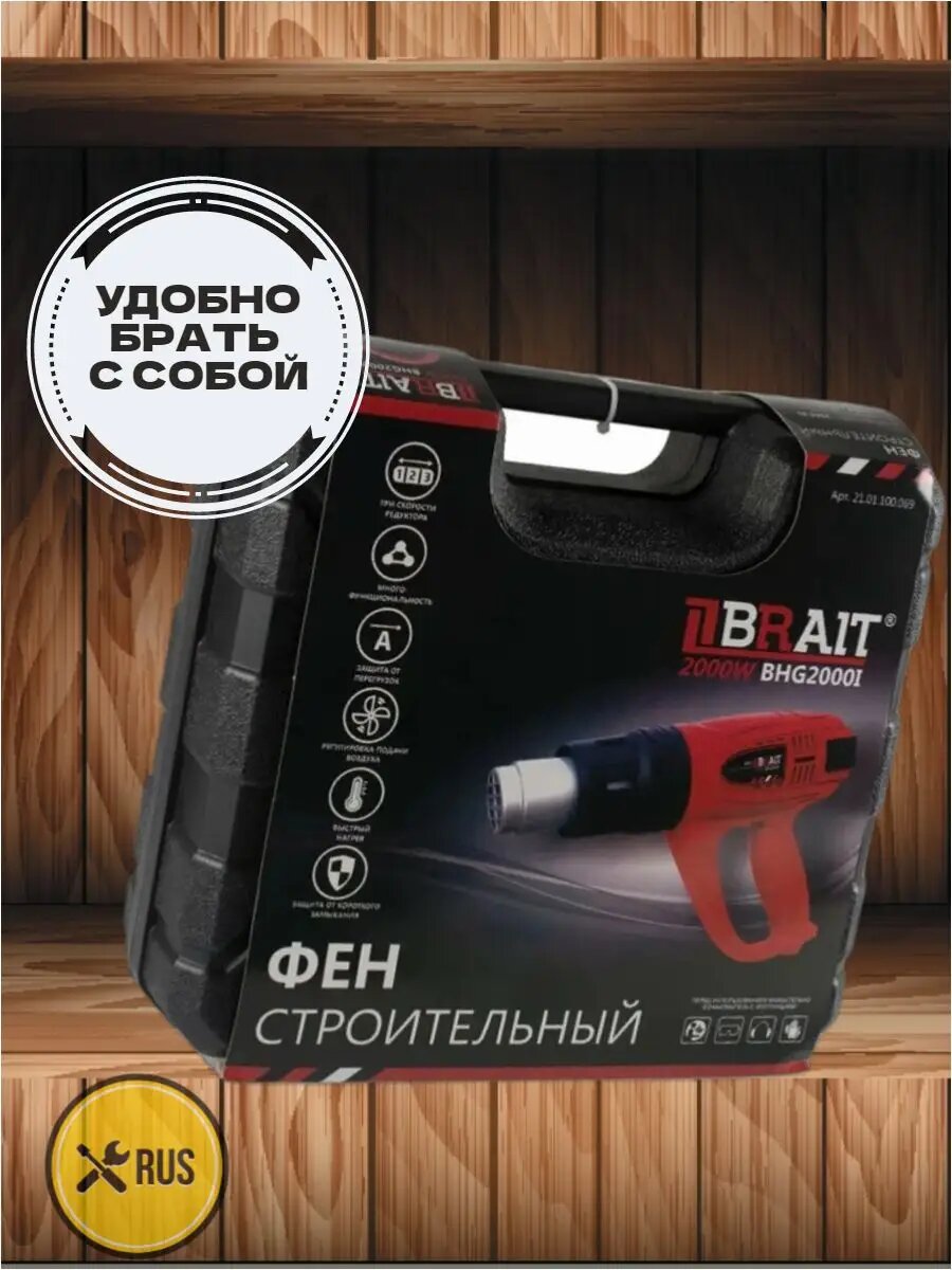 Ниже Вы можете прочитать отзывы на Фен строительный BRAIT BHG2000i (2000Вт, макс.темп. 600С, 4 насадок, 3 скорости, кейс), ознакомится с подробными характеристиками, посмотреть интересные обзоры и фотографии на Фен строительный BRAIT BHG2000i (2000Вт, макс.темп. 600С, 4 насадок, 3 скорости, кейс).