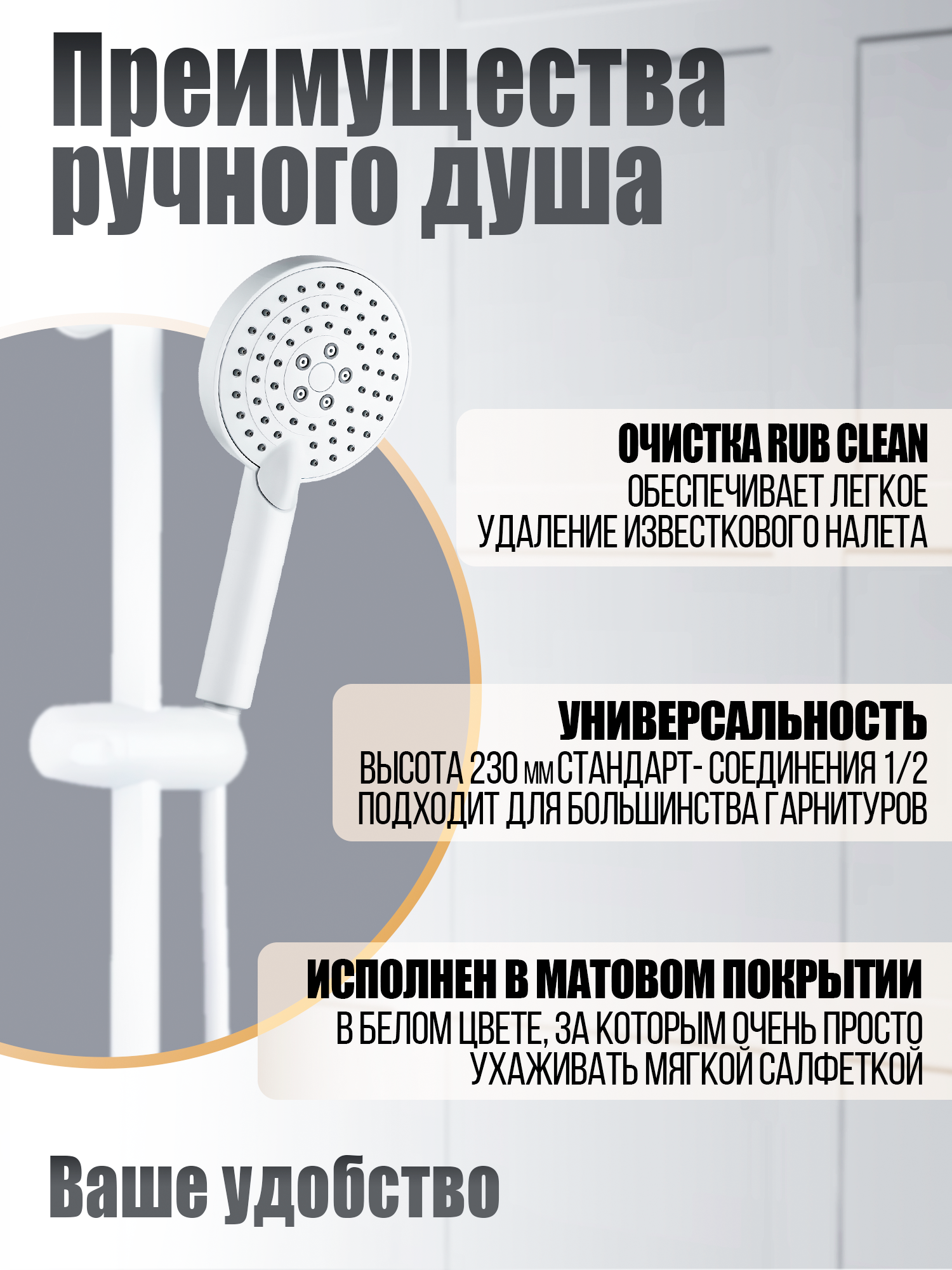 | Тип | ручной душ (лейка без шланга) |