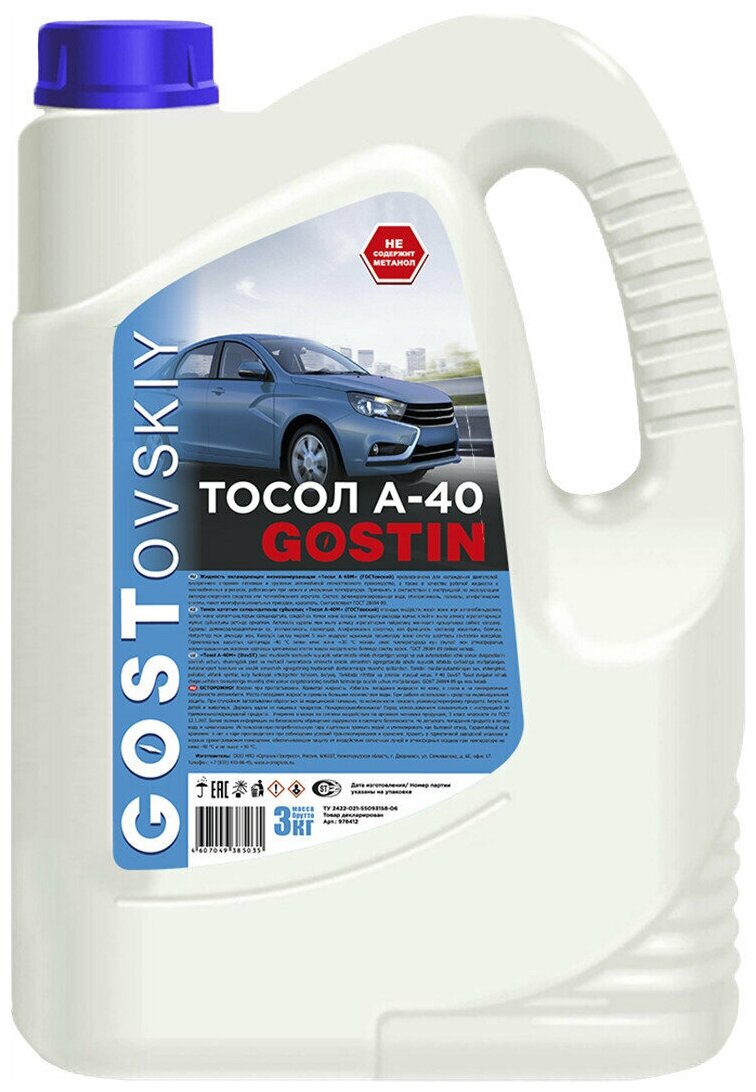 Тосол гостовский гостовский А-40 готовый -40C синий 3 кг 978412