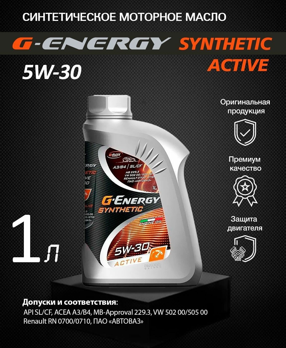 Cинтетическое моторное масло G-Energy Synthetic Active 5W-30, 1 л, 1 кг, 1 шт