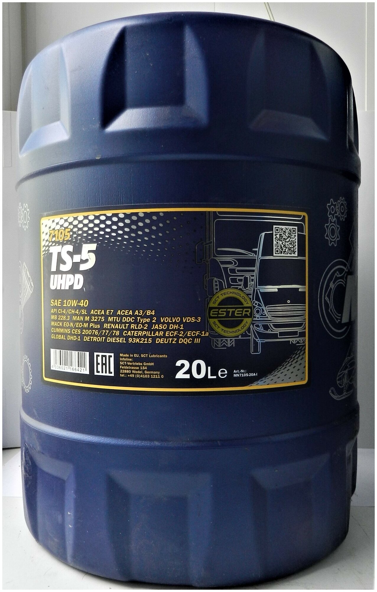 SCT GERMANY MN710520 Масо моторное 10W40 поусинтетическое MANNOL 20- CI-4/CH-4/SL ESTER MN7105-20, TS-5 UHPD,