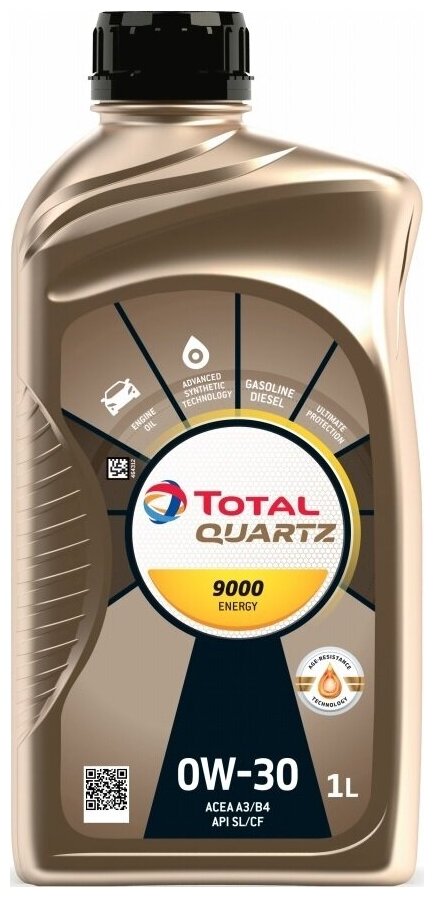 Масло моторное синтетическое QUARTZ 9000 ENERGY 0W30 API SL/CF, ACEA A3/B4 1л (1 шт.)