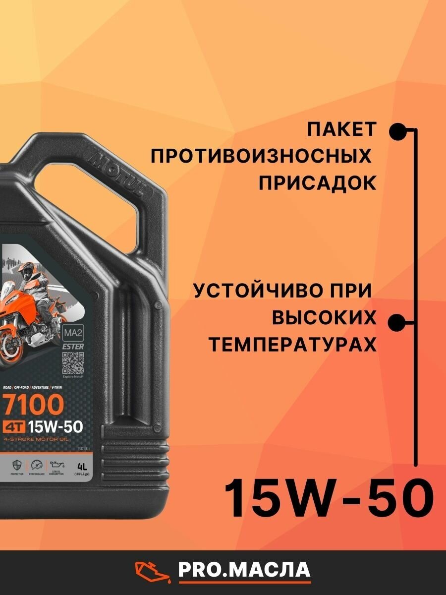 Моторное масло Motul 7100 4T SAE 15W-50 4 л 104299 .