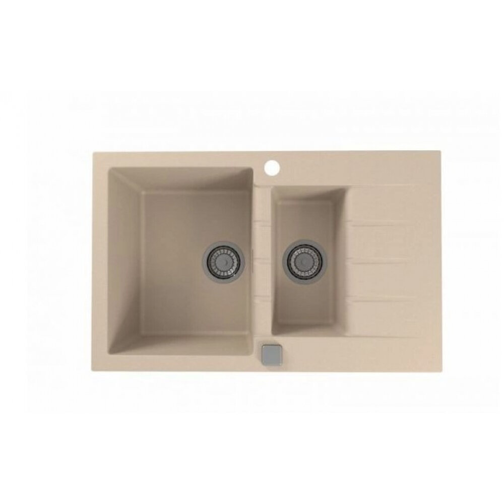 Каменная мойка для кухни с двумя чашами и крылом ALVEUS GRANITAL CADIT 70 BEIGE - G55 790 X 500 искусственный камень гранит с сифоном. Цвет бежевый