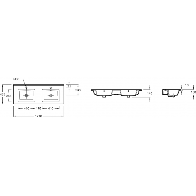 Раковина-столешница с двумя чашами Jacob Delafon Ola EXVA112-00 120 см