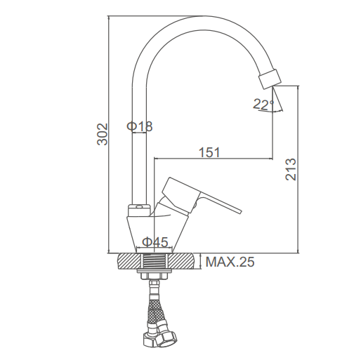 Cмеситель для кухни Accoona A4467, однорычажный, с гайкой, силумин, хром