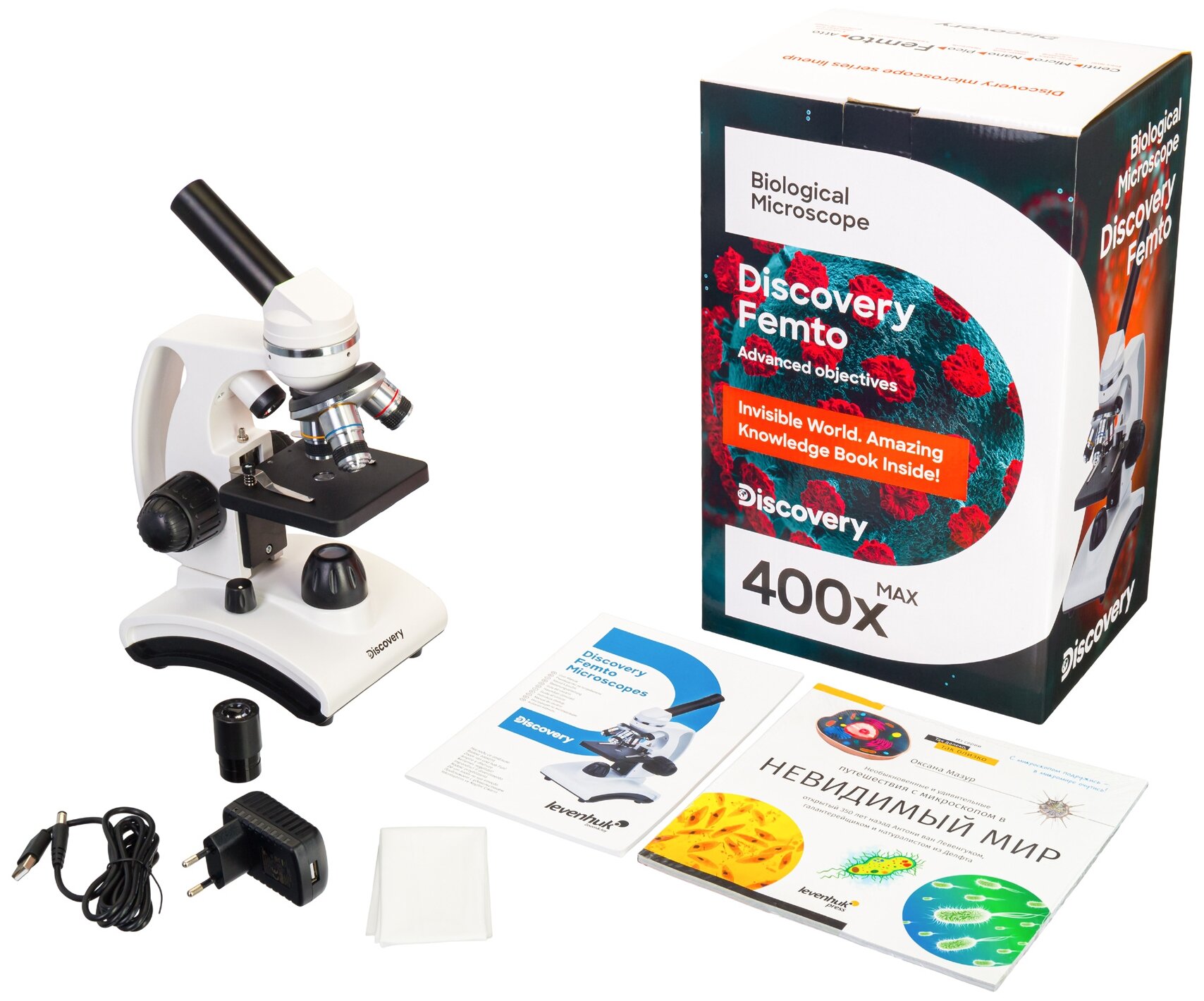 Микроскоп Levenhuk (Левенгук) Discovery Femto Polar с книгой интересное: