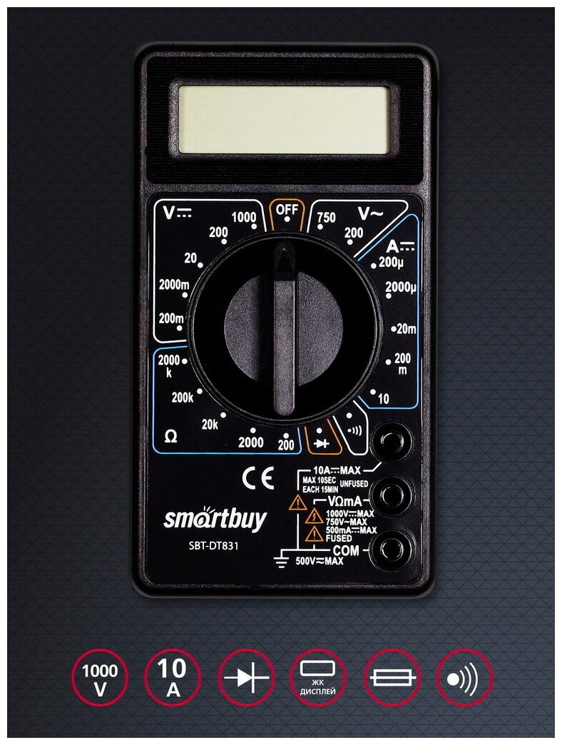 Купить Мультиметр цифровой Smartbuy SBT-DT831, 15 положений