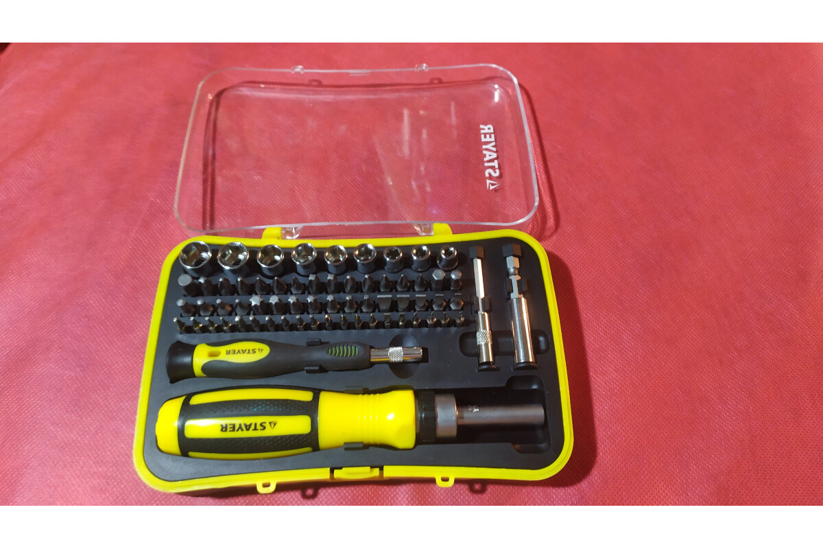 | Отзыв: | Отличный набор за свои деньги. Очень много бит, и когда большая отвертка кажется громоздкой (при разборке мелких деталей, ноутбука, камер видеонаблюдения, телевизоров и т.д.) то на помощь приходит маленькая отвертка, которая очень удобно лежит в руке. Претензий к товару никаких нет, ничего не люфтит, не отваливается. Рукоять прорезинена черной лентой, а желтый слой - твёрдый пластик. В руке ни разу не скользила. Покупал для работы на каждый день, пользуюсь 6 месяцев, ничего не сломалось. Всем советую! |