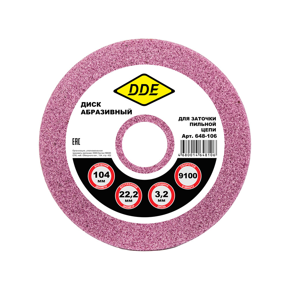 Купить Диск абразивный точильный DDE 104х3,2х22,2 мм для цепи 3/8"PM, 325", 1/4" (648-106)