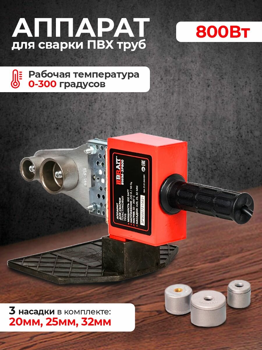 Аппарат для сварки пластиковых / полипропиленовых труб BRAIT BWM-3P800 / Паяльник для труб ПВХ ( 800 Вт, 3 насадки, 20-32 мм, кейс )