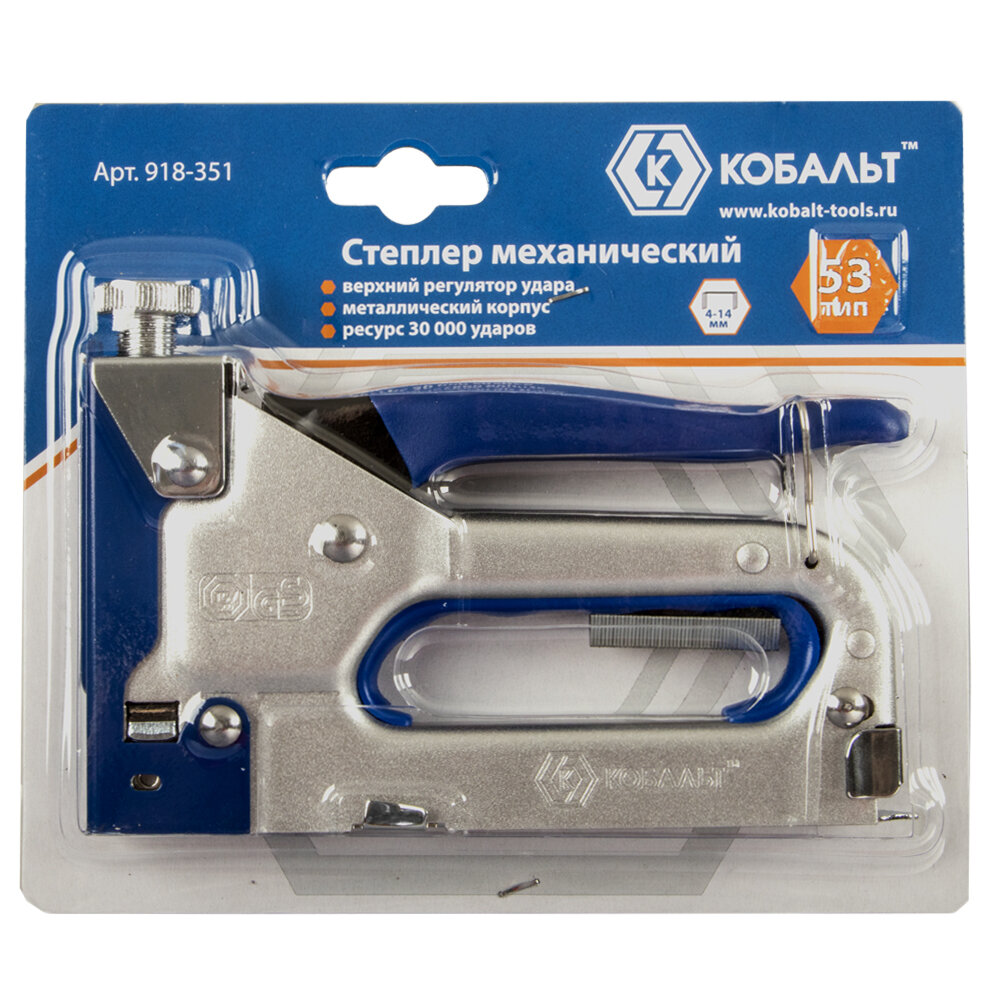 Степлер механический скобы 4-14 мм, тип 53, с верхним регулятором удара, .очень высокий ресурс кобальт 918-351