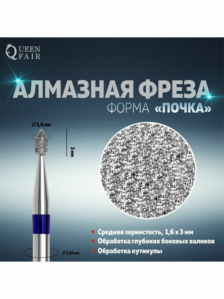 Купить Queen fair Фреза алмазная для маникюра «Почка», средняя зернистость, 1,6 × 3 мм, в пластиковом футляре