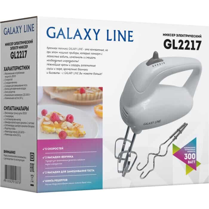 Миксер Galaxy LINE GL 2217 (300Вт, 5 скор. 2 насадки-венчика, 2 насадки для замеш.)