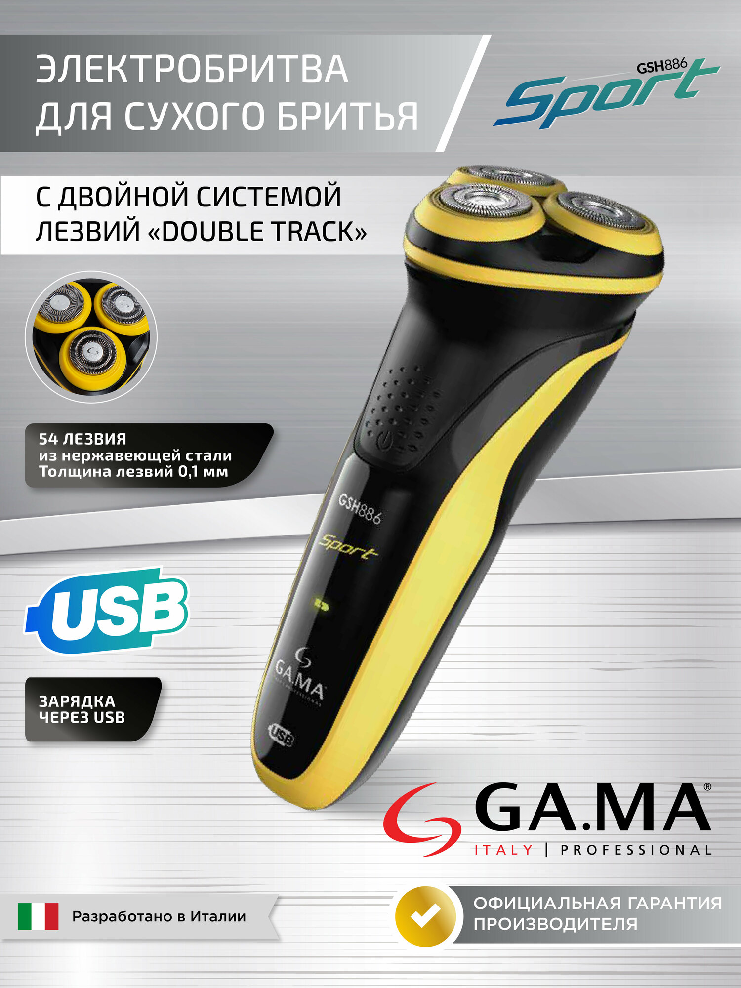 Электробритва GA.MA GSH886 SPORT - MS (GM0606)