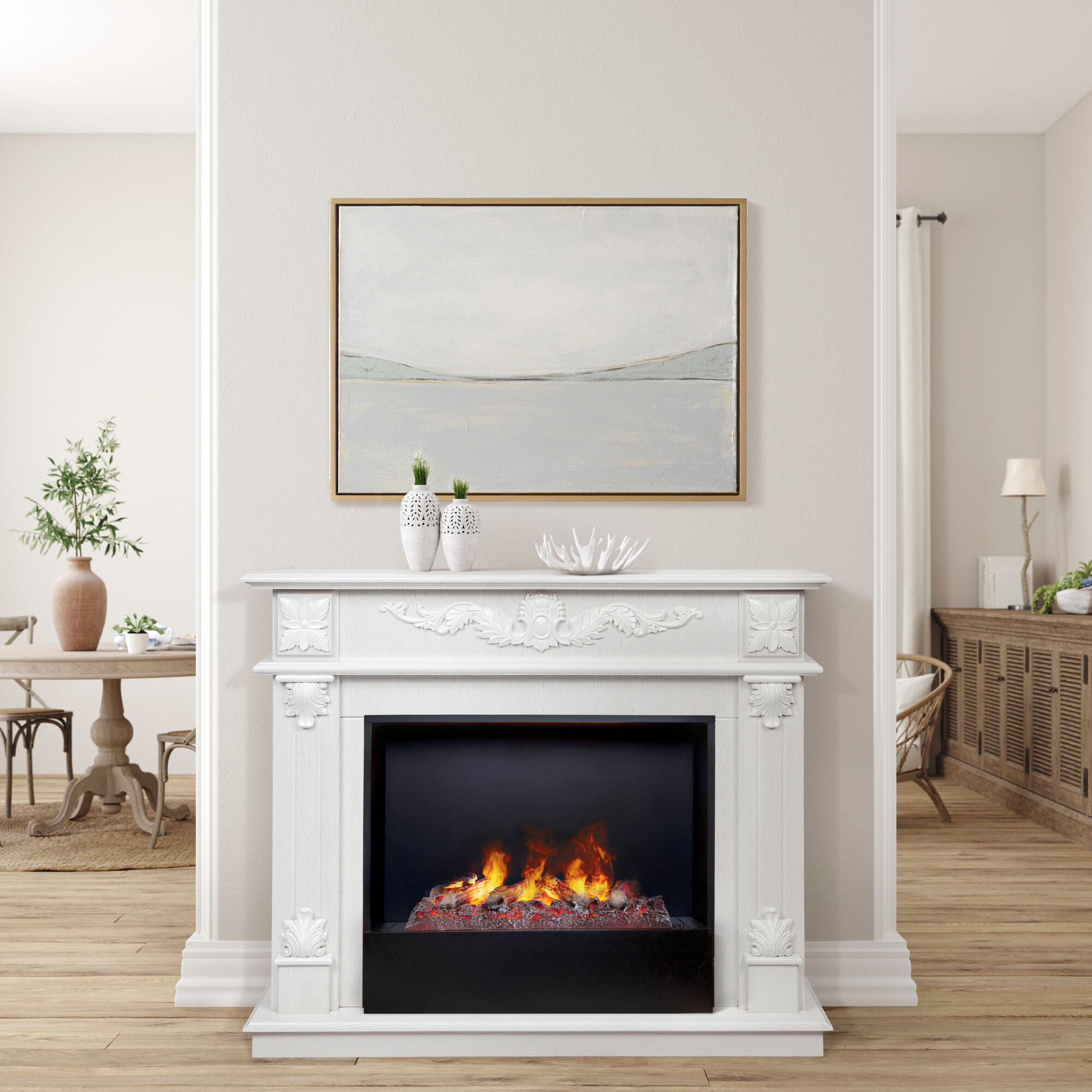Электрокамин RealFlame Philadelphia с очагом 3D Cassette 630 Белое золото интересное: