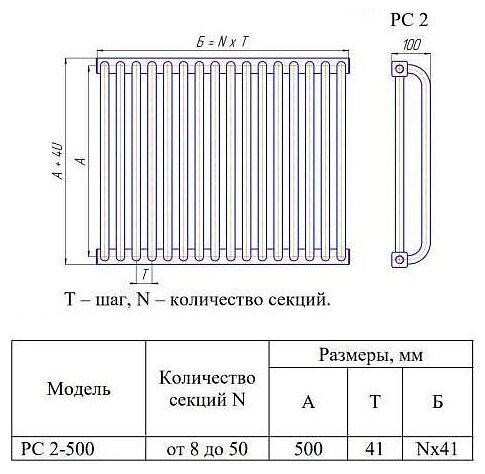 КЗТО РС 2-500, 42 секции, боковое, цвет белый