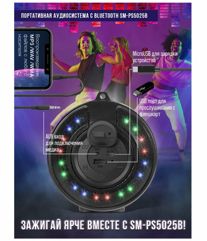 Портативная акустическая система Soundmax SM-PS5025B интересное: