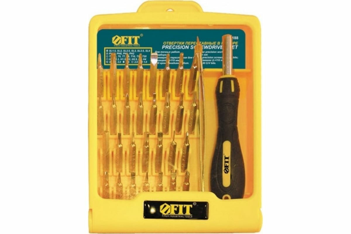 Отвертка с битами для точных работ FIT IT 56188 30 CrV бит, пинцет, в пластиковом футляре