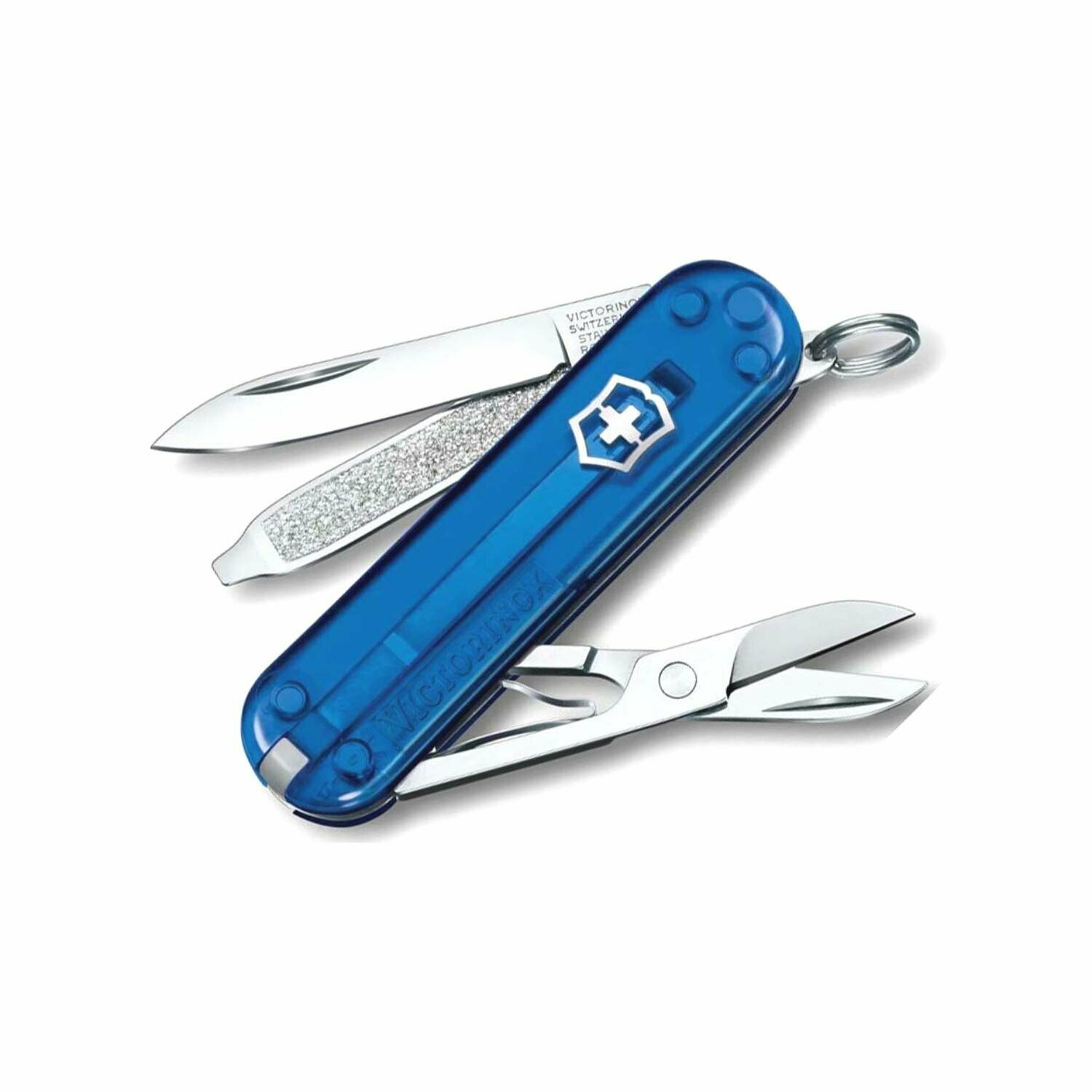 Нож-брелок Victorinox Classic SD Colors Persian Indigo, 58 мм, 7 функций, полупрозрачный индиго