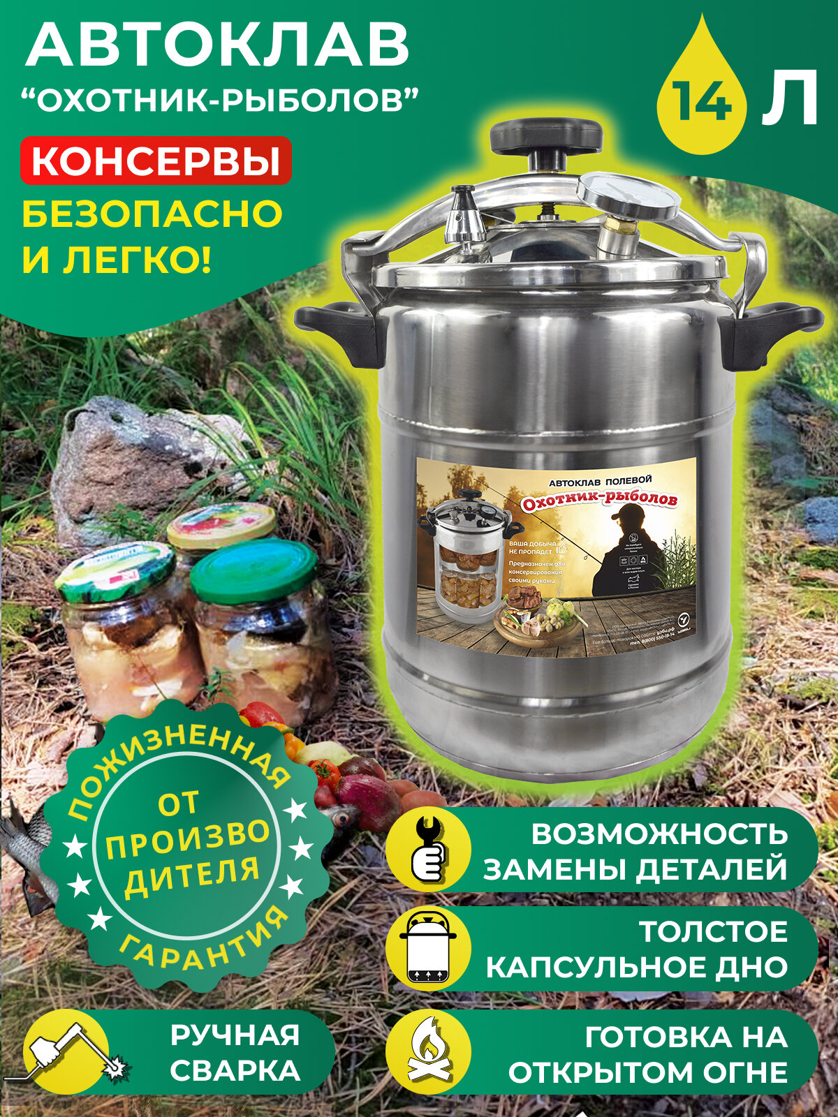 | Минусы: | Заказал автоклав УЗБИ Охотник-рыболов.