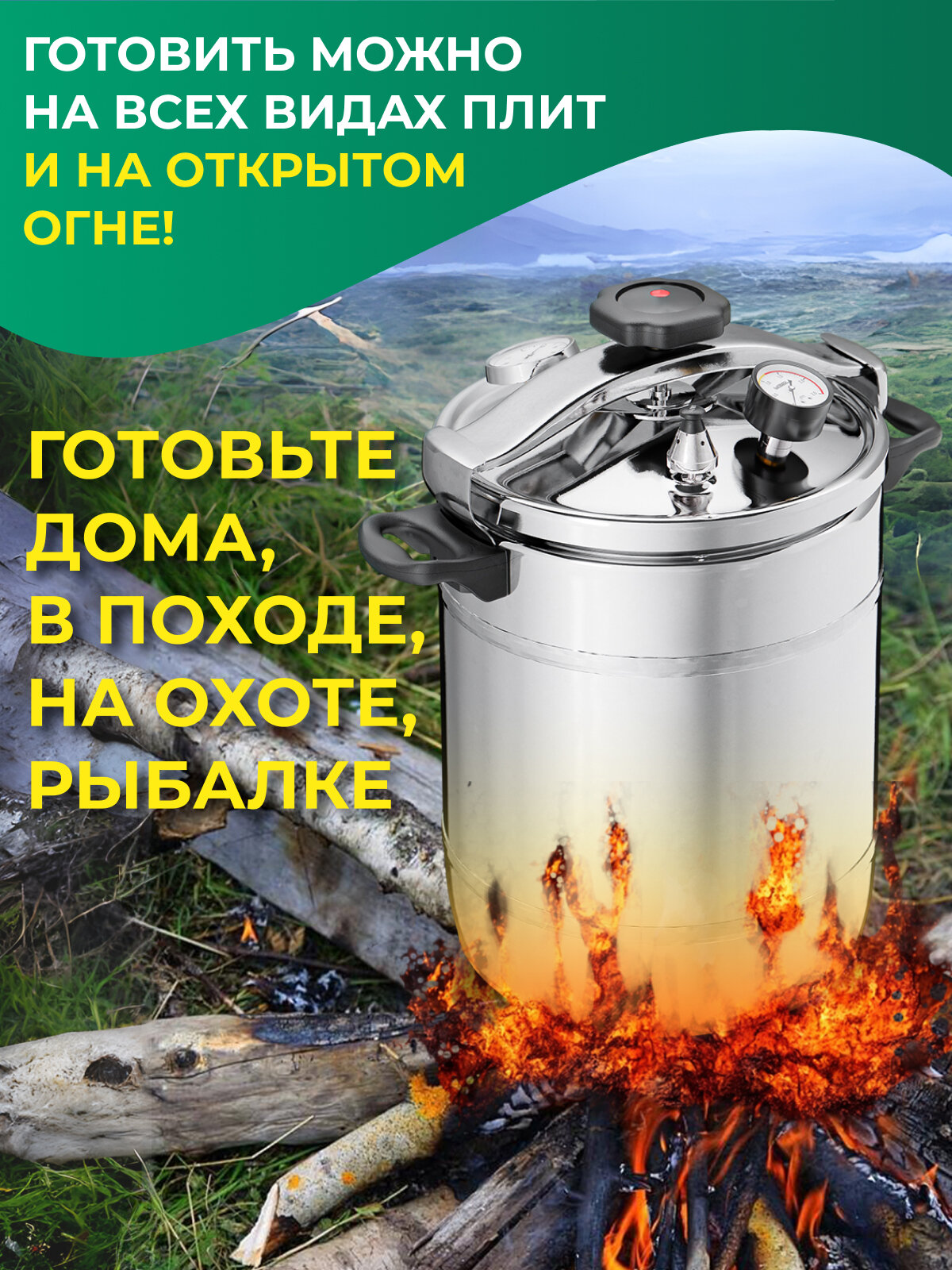 Автоклав-стерилизатор "Охотник-рыболов" 14л, нержавеющая сталь, манометр, термометр, клапан сброса избыточного давления / прочая техника