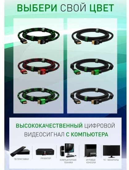 Видео-кабель 2м HDMI GCR Ultra HD 4K 3D 18 Гбит/с частично нейлон для игровых консолей черно-зеленый 24К GOLD