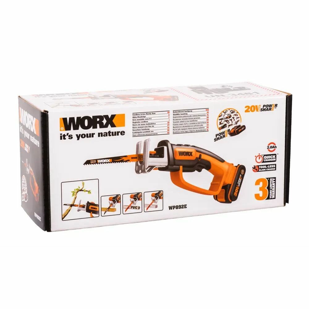 Пила сабельная аккумуляторная Worx WP892E 20 В, АКБ и ЗУ в комплекте