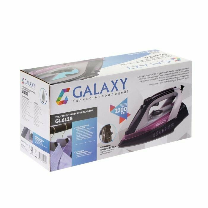 Утюг Galaxy LINE GL 6128, 2200 Вт, керамическая подошва, 30 г/мин, 150 мл, фиолетовый интересное: