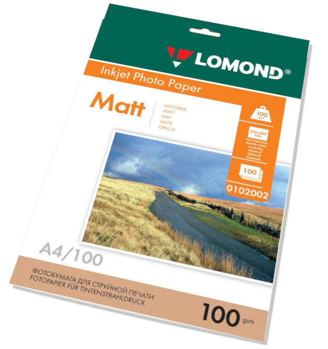 100 г/м², А4, Матовая двухсторонняя фотобумага, 100 листов Lomond 0102002