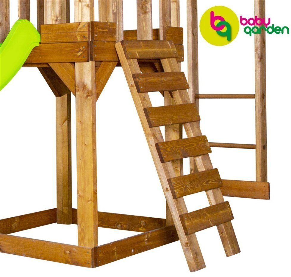 Детская игровая площадка Babygarden Play 4 темно-зеленая вместимость 5-8 детей, материал дерево/пластик/сталь, длина горки 220 см, безопасная конструкция