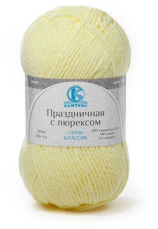 Пряжа "Праздничная" 48% кашмилон (ПАН), 48% акрил, 4% метанит 160м/50гр (027 лимон незр)./ В упаковке: 10