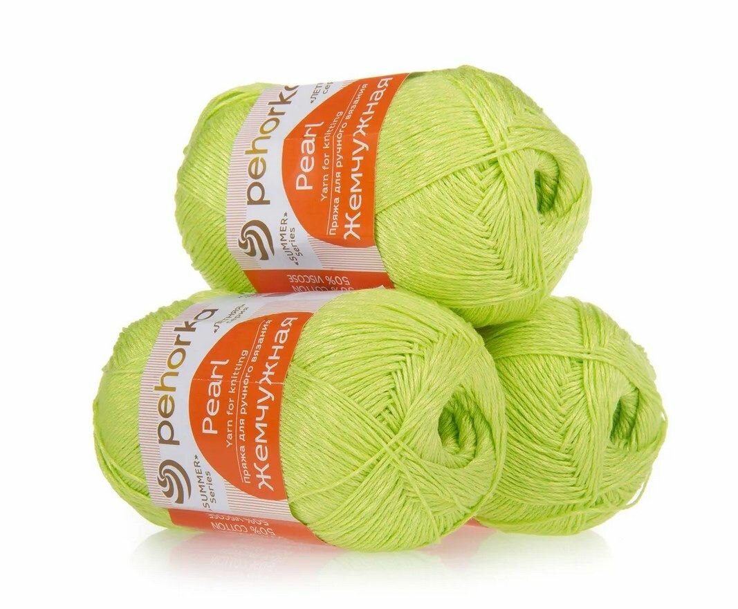 Пряжа Пехорка Жемчужная - 1 моток 483 незрелый лимон 50% хлопок 50% вискоза 425м/100г