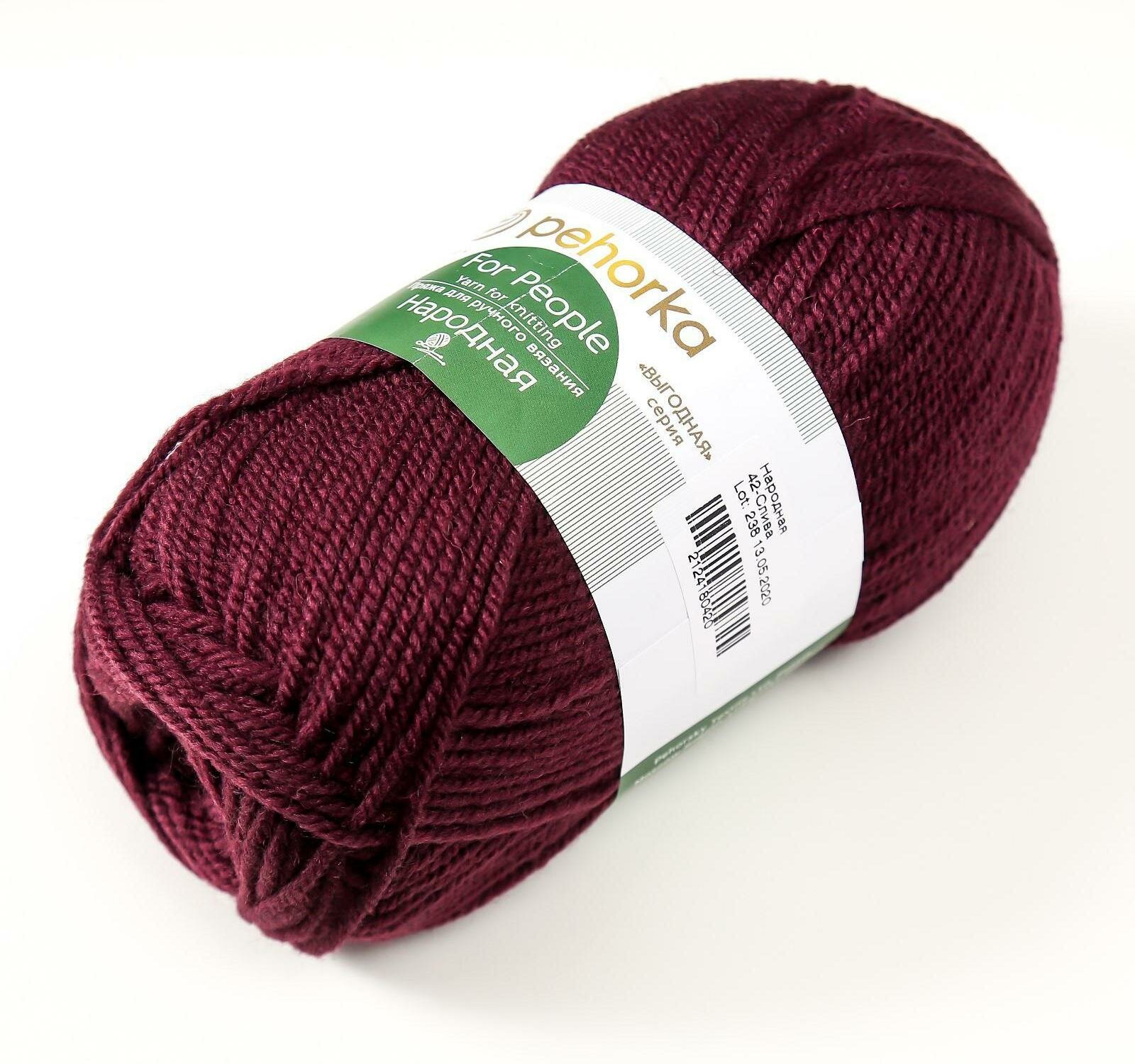 Пряжа Пехорка - Народная, 30% шерсть, 70% акрил объёмный, 220м/100г, сливовая, 1 шт.