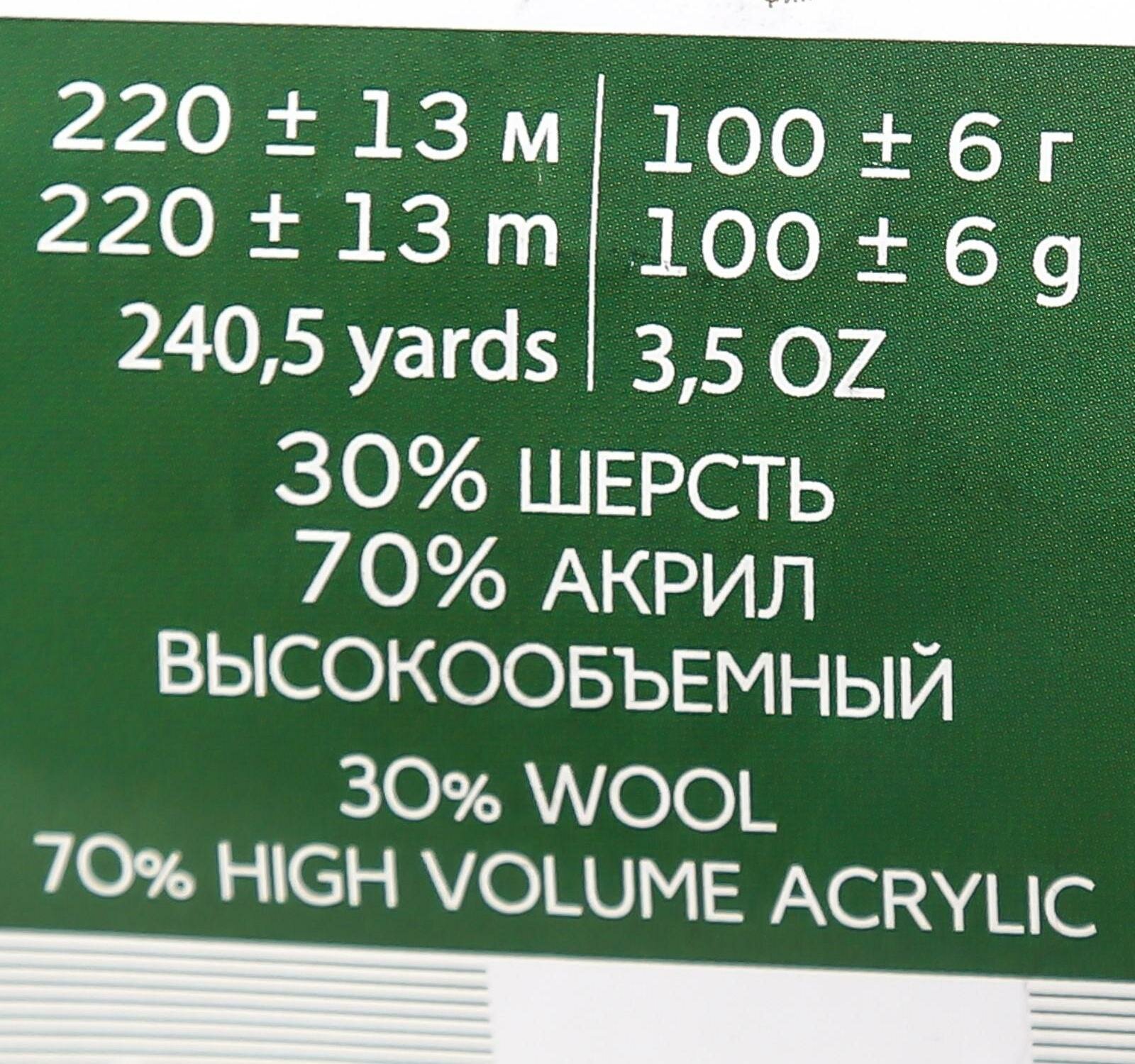 Пряжа Пехорский текстиль "Народная" 30% шерсть, 70% акрил объемный 220 м /100 гр - 1 шт