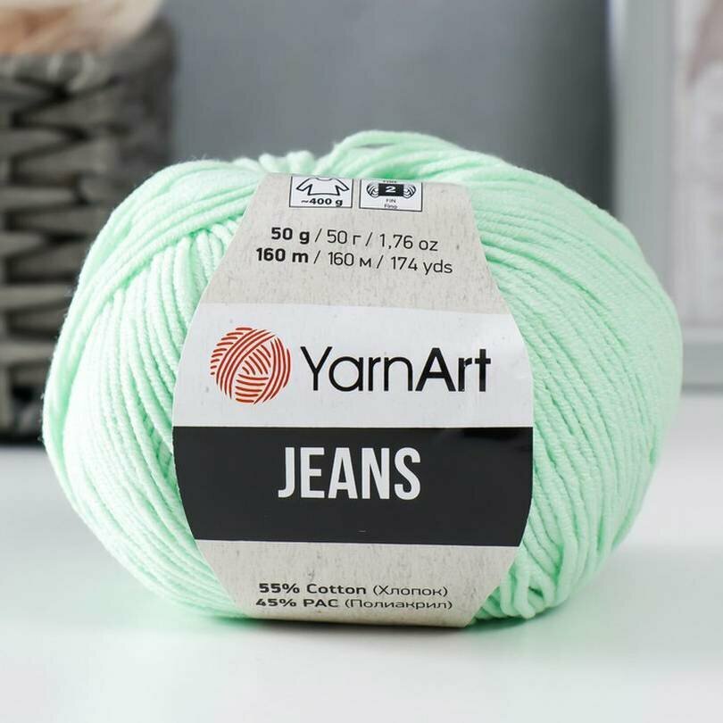 Купить Пряжа YarnArt Jeans, 55 % хлопок, 45 % акрил, 50 г, 160 м, 1 шт., 79 мята