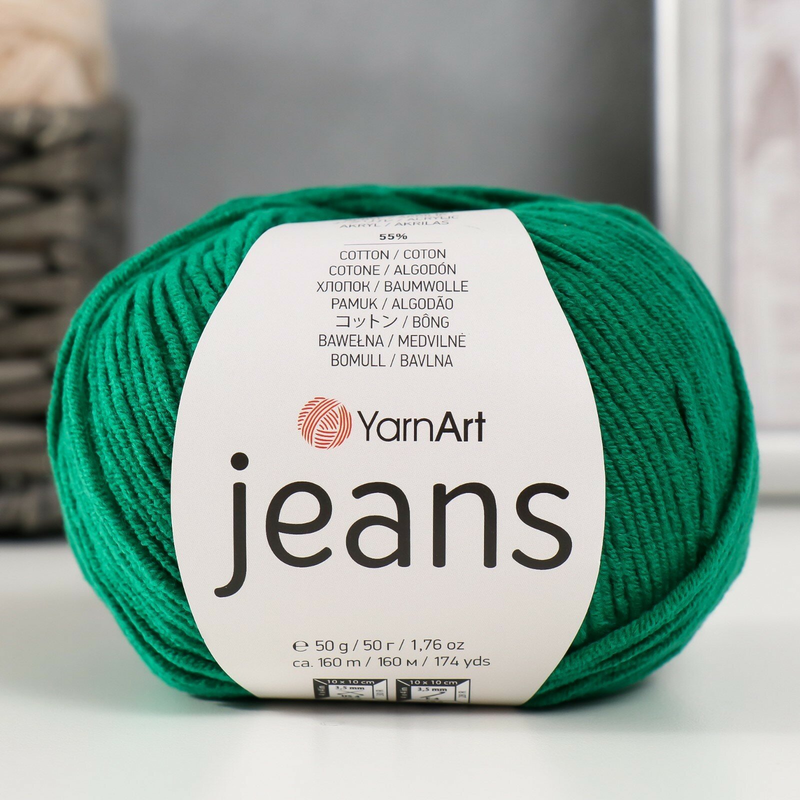 Купить Пряжа YarnArt Jeans Ярнарт Джинс, 52 зеленый, 55 % хлопок, 45 % акрил, 50 г, 160 м, 1 моток.