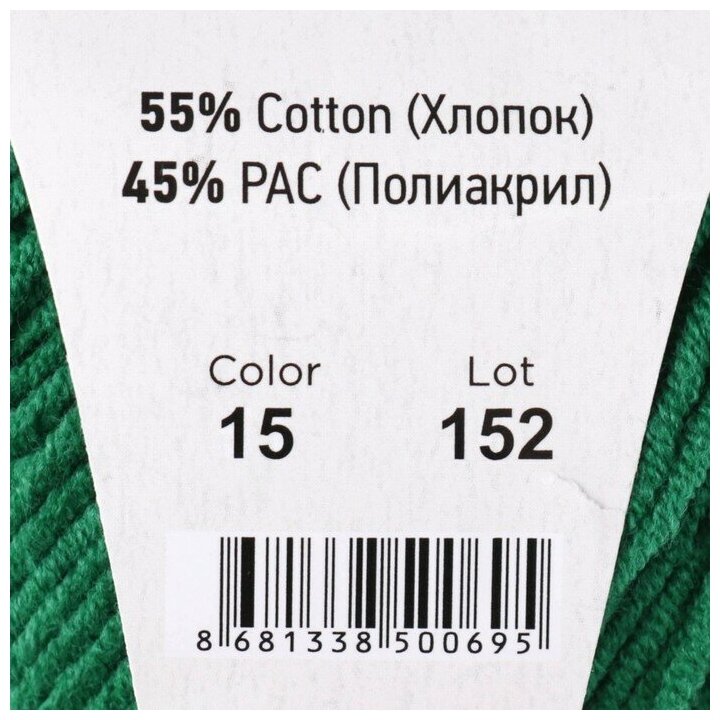 СохранитьПряжа YarnArt Jeans Ярнарт Джинс, 52 зеленый, 55 % хлопок, 45 % акрил, 50 г, 160 м, 1 моток. интересное: