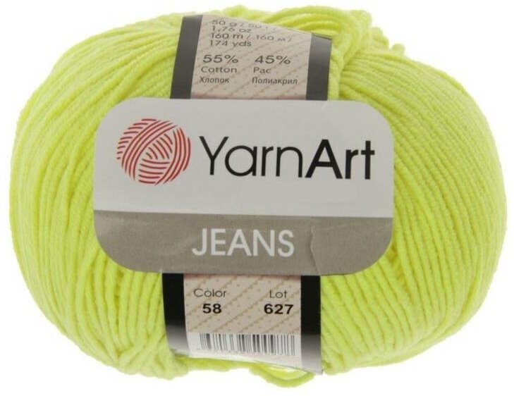 Ниже Вы можете прочитать отзывы на YarnArt Jeans Желтый неон 58, хлопок 55% акрил 45% 50г 160м, ознакомится с подробными характеристиками, посмотреть интересные обзоры и фотографии на YarnArt Jeans Желтый неон 58, хлопок 55% акрил 45% 50г 160м.