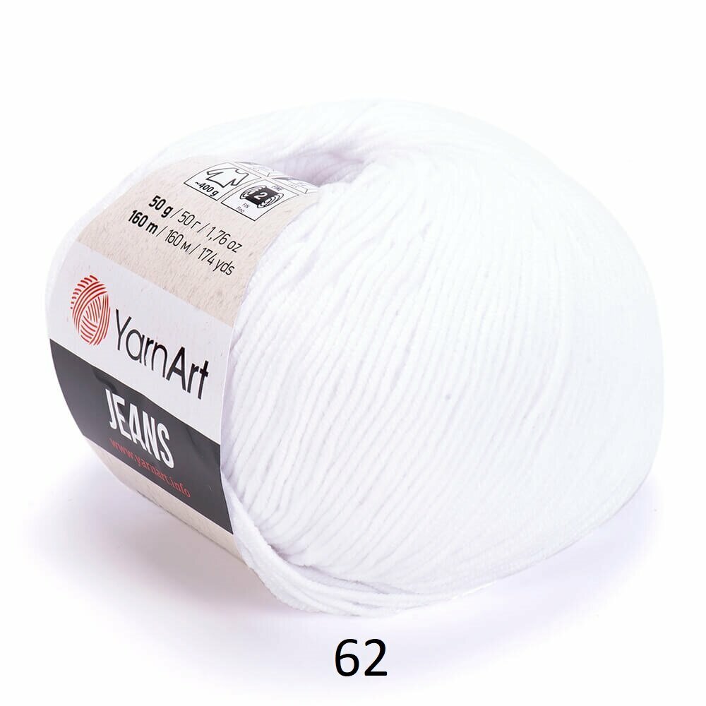 Купить YarnArt Jeans 5 мотков Белоснежный 62, 55% Хлопок 45% Акрил, 50г 160м