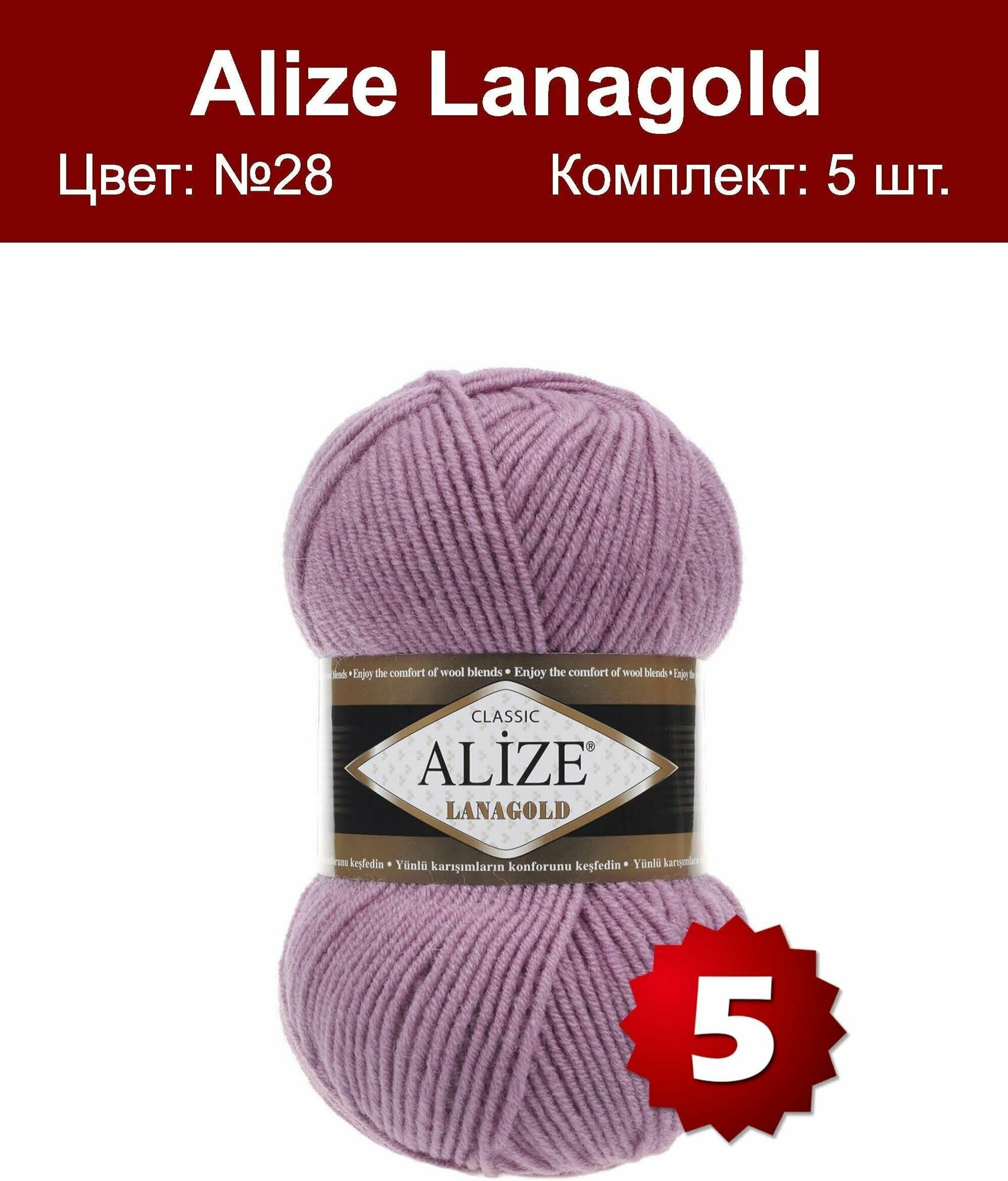 Пряжа Alize Lanagold | Турция | 5шт упаковка | Акрил: 51%, Шерсть: 49%
