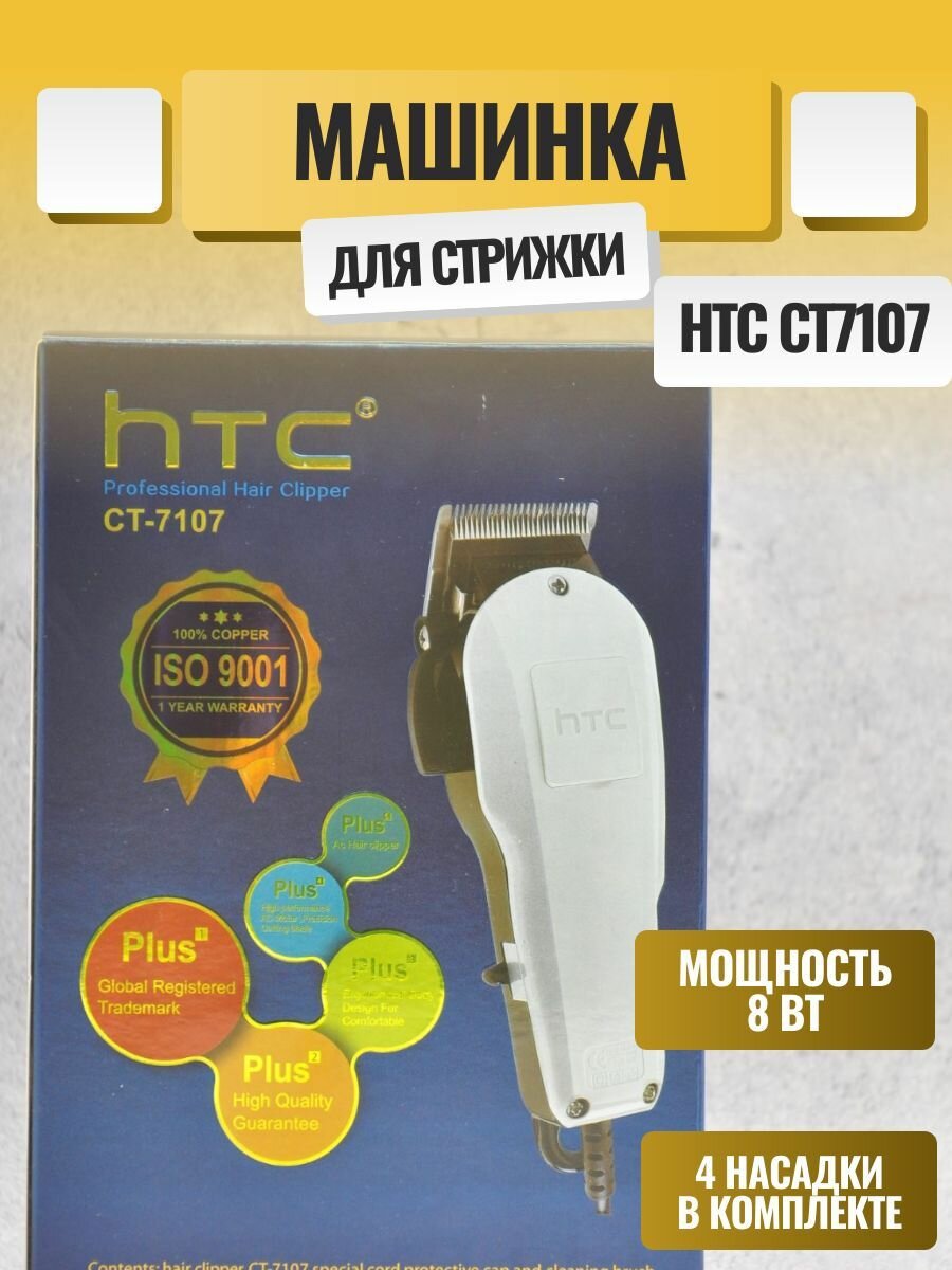 Машинка для стрижки волос HTC CT-7107 8 Вт, 4 шт, От сети, Белый