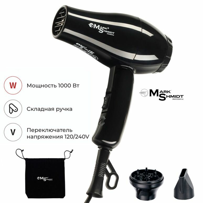 MARK SHMIDT ФЕН для волос 1000W АРТ.9908 дорожный чёрный