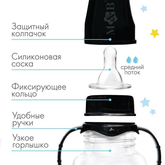 Курносики Бутылочка полипропиленовая с ручками и двумя силиконовыми сосками, 250 мл, с 6 месяцев