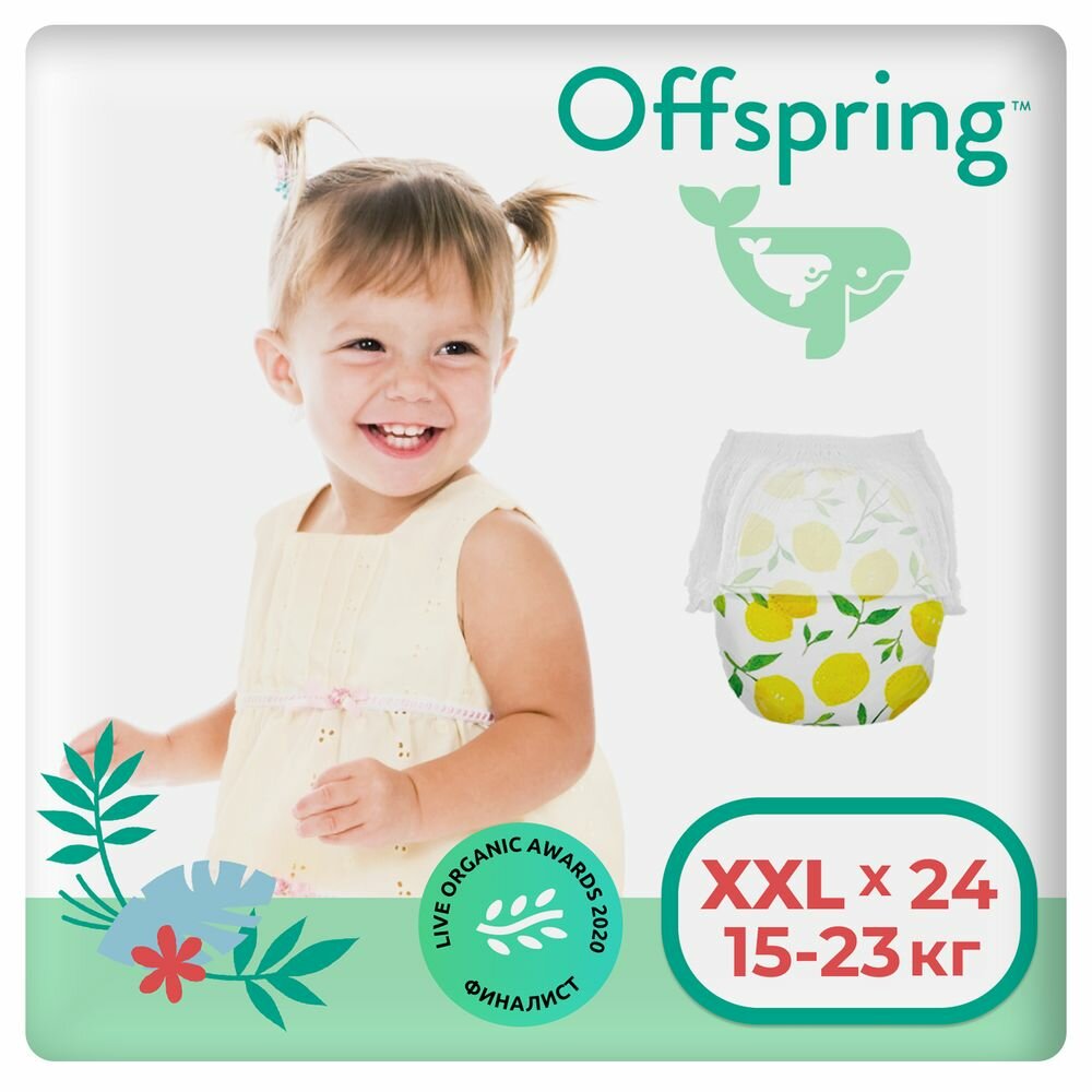 Трусики-подгузники Offspring расцветка Лимоны XXL (15-23 кг.), 24 шт.