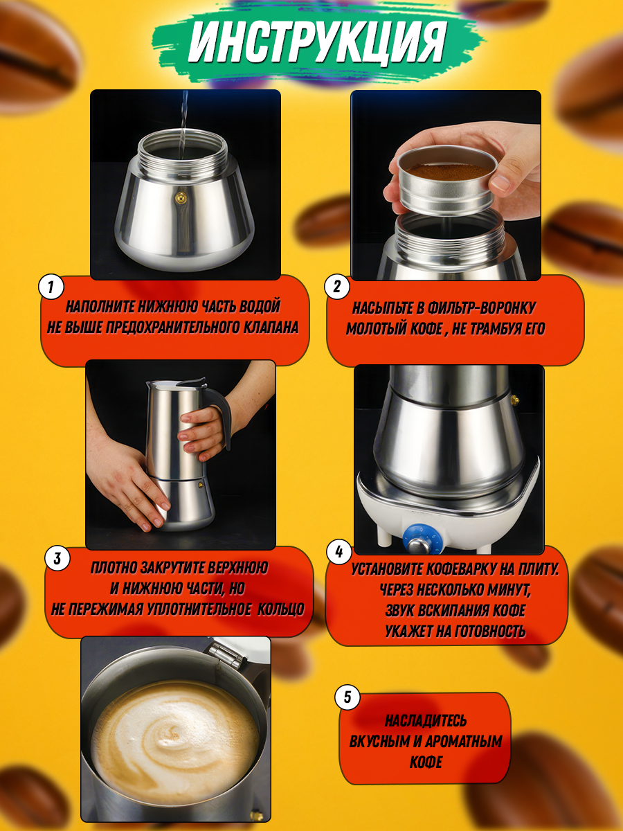 Кофеварка гейзерная 300 мл (6 порций) из нержавеющей стали Ofenbach NB-101101 интересное: