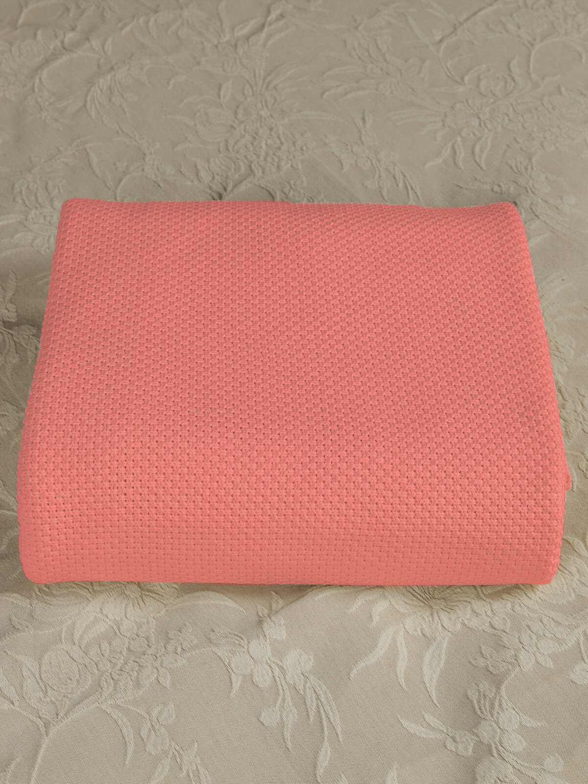 Плед 180х220, вязаный, Warm Whiff, коралловый, хлопок 100%, покрывало на кровать, на диван, на кресло, большой, тонкий, в подарочной коробке