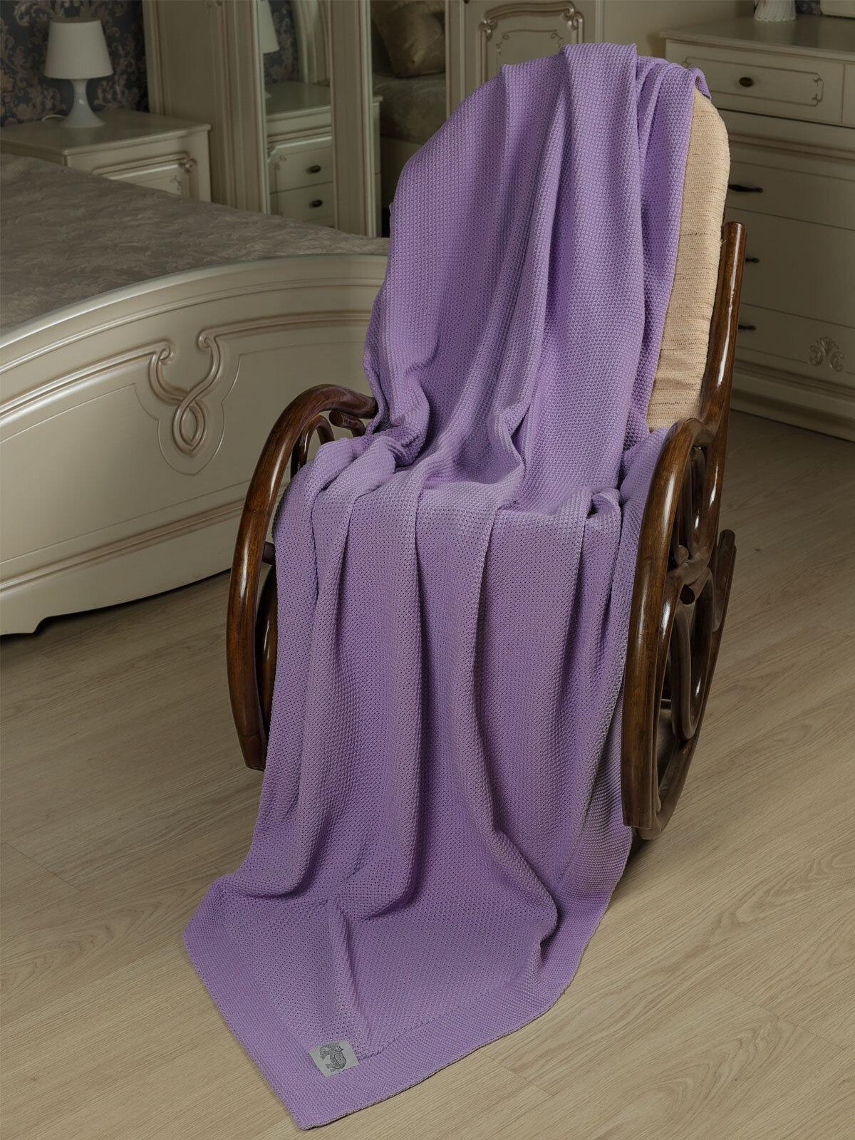 Плед, вязаный, Warm Whiff, фиолетовый, 180х220, хлопок, покрывало для взрослого, сна, дивана, на кресло, большой, тонкий, натуральный, красивый, нежный, натуральный, гипоалергенный