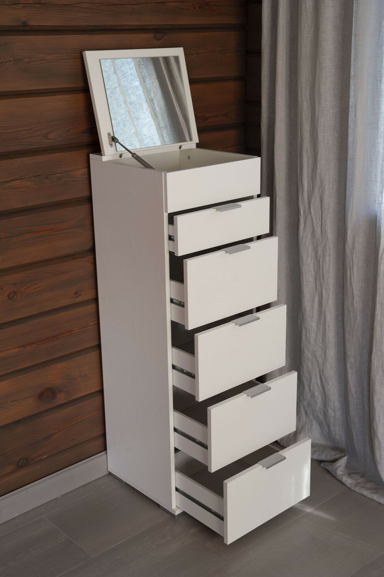 | Минусы: | Качество комода посредственное. Белый цвет под дерево. На фото этого не видно. |