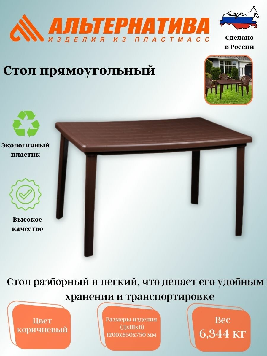 Стол садовый "Альтернатива", 120 x 85 x 75 см, цвет: коричневый